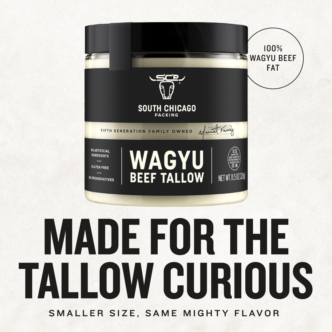 This product is perfect for the tallow curious. From ranch to table, South Chicago Packing’s Wagyu Beef Tallow is sourced from only the best. This product is 100% premium rendered Wagyu beef fat. It is an easy to grab pantry staple available in an 11.5 oz jar. It upgrades and enhances flavor and richness to your meats, veggies, eggs and much more. Our Wagyu Beef Tallow is a natural cooking fat that is Keto, Paleo, and Whole30 & gluten-free friendly. All of our products support nose-to-tail sustainability.